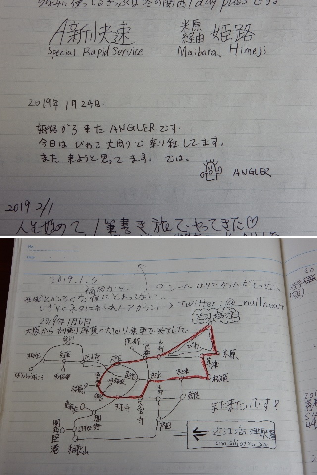 駅ノートに新しい作品は見られませんでしが、やはり大回り乗車に