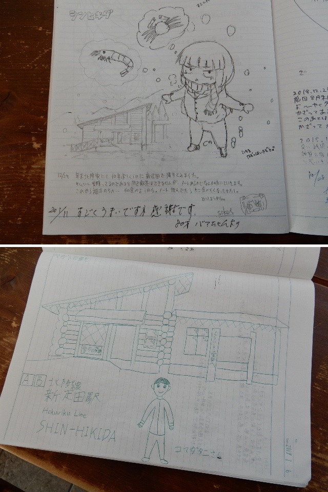 駅舎にテーブルと椅子が完備してますから、駅ノートを描く環境として