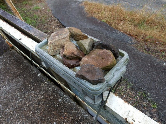 フタにロック機能がナイので、石で押さえてあります。
