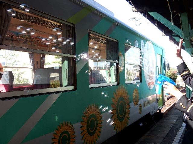 今回も列車が着いたら「シャボン玉でお見送り」が行われています。