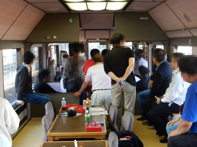 列車が貨物線などに入ると、前方の展望室は「かぶり付き」の人で