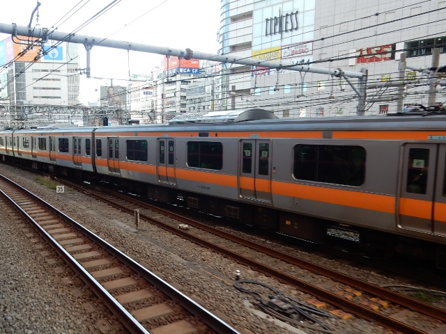 中央線のオレンジ色が見えると、ますます新宿の雰囲気を実感して