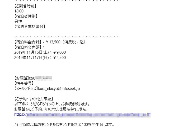後で連絡メールをよく見たら、その