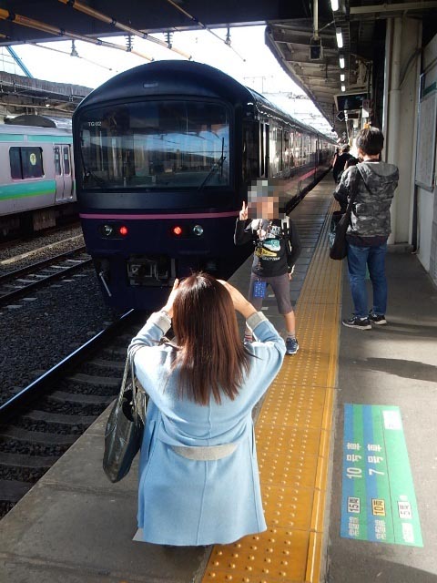 お座敷列車という物が珍しいのか、一般客の人たちも集まってくるん
