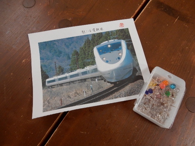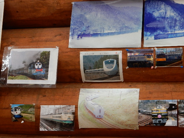 新疋田駅は壁に自由に写真を貼ってもいいと見えて、画鋲が置いて