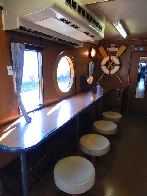指定席・自由席とも車端部はカウンタースペースになっており、ココは