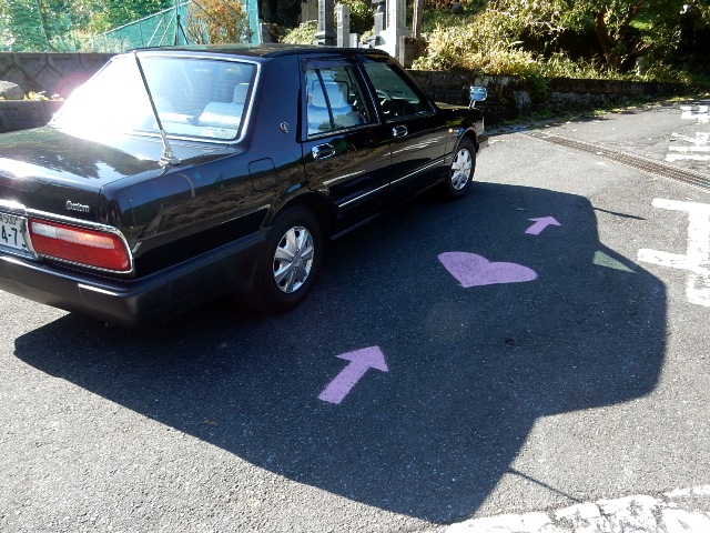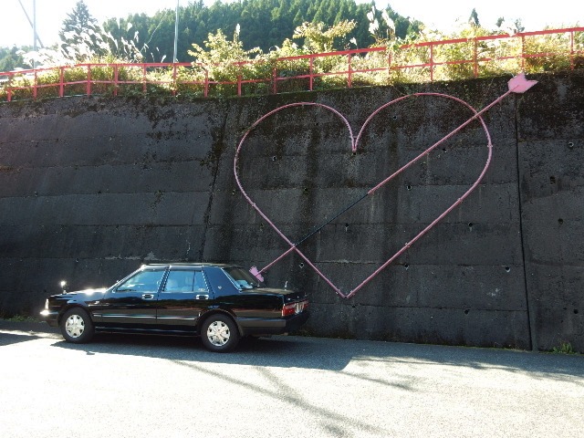 駅の向かい側にある崖?には矢が刺さったハートがあります。