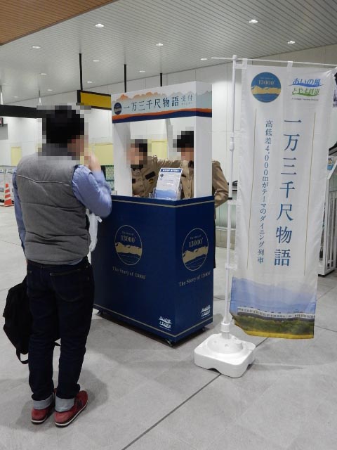 さて富山ですが、あいの風とやま鉄道の改札内で「一万三千尺物語」