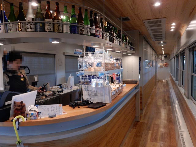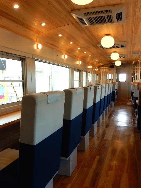 1号車の山側は窓に向いたカウンター席が並んでいます。一人旅