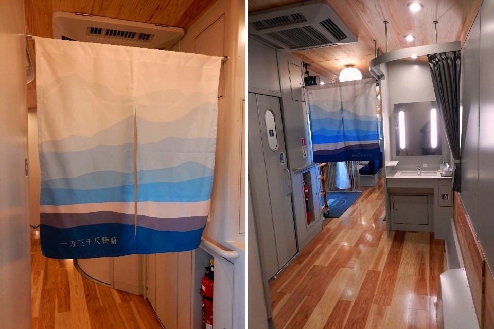 乗降口部分とはオリジナルデザインの暖簾で仕切られています。
