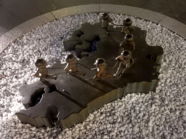 九州の陸地を模した台の上で謎の