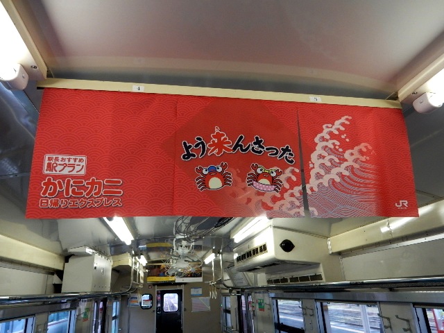 「かにカニ日帰りエクスプレス」の広告はのれん風です。