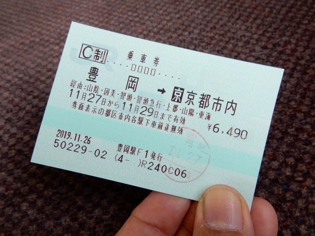 遠回りで京都まで帰る乗車券を発券して貰いました。