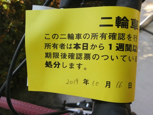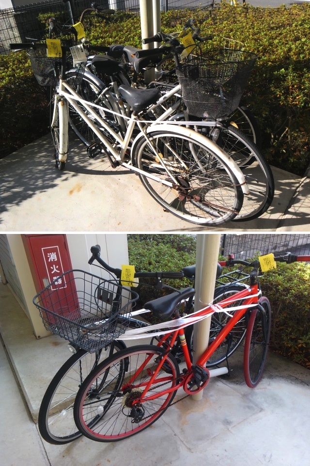 去年の秋頃、私が住んでるアパートの自転車置き場に放置自転車が