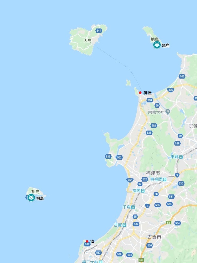 地島行きの船は宗像市の神湊(こうのみなと)と言う所から出ています。