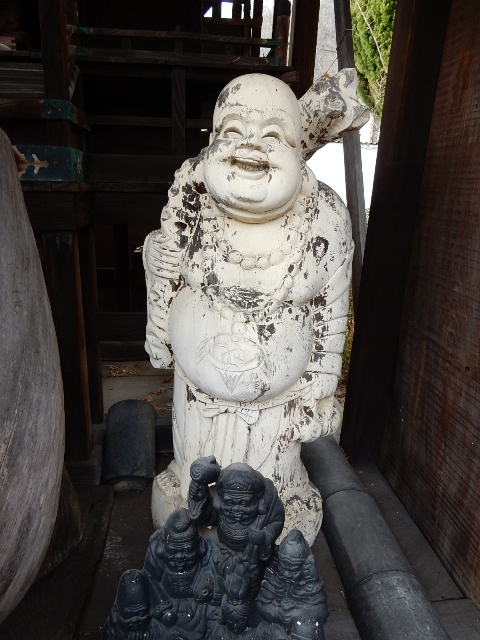 ① ホームにあった布袋様のうち、リアルな細工の方。
