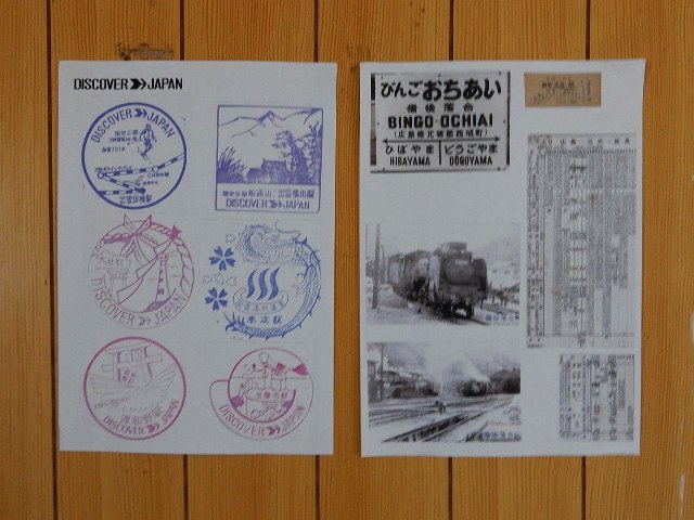 どう言う意図か、駅舎内の壁には国鉄時代の記念スタンプや時刻表