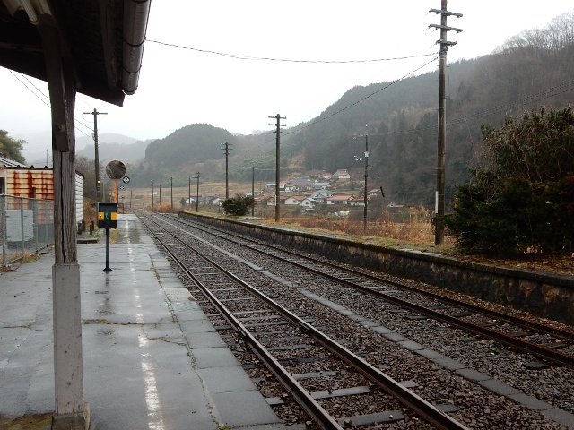 待合室があるだけの小さな駅舎を出て、ホームを見てみます。元は