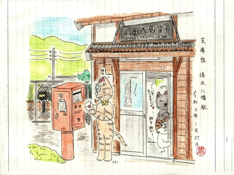 駅舎の前に郵便ポストがあるからなのか、お2人とも手紙…恐らくは
