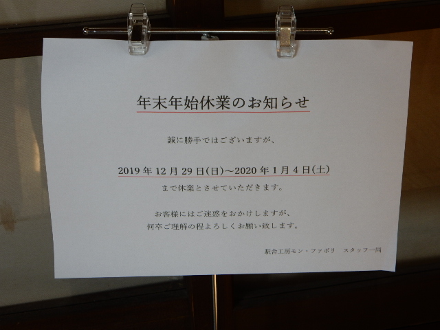 大人気なパン屋さん「モン・ファボリ」は当日はお正月休みでした。