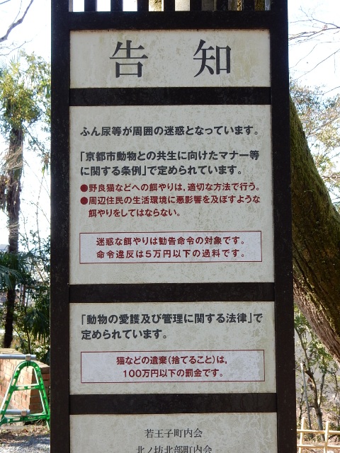 看板が何箇所かに建てられています。やはり「エサやり禁止」だわな。