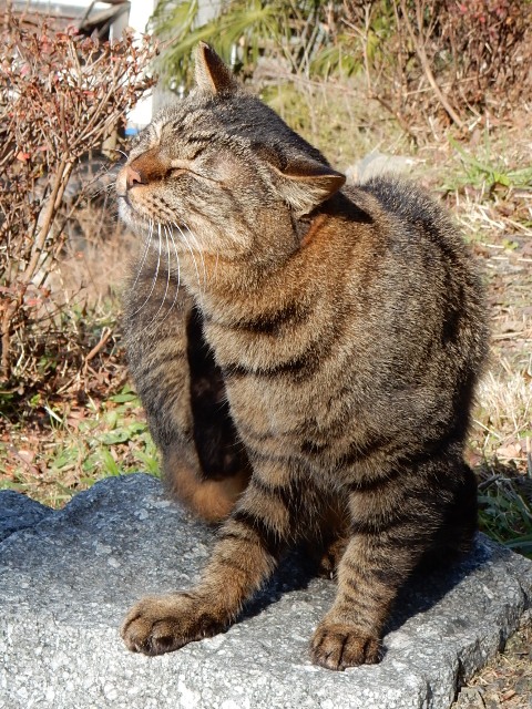 器用に後ろ脚で首筋を掻いてました。…当日はお天気が良く、冬場