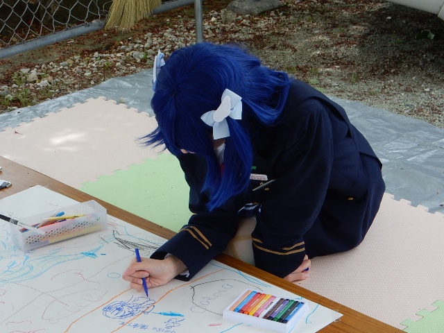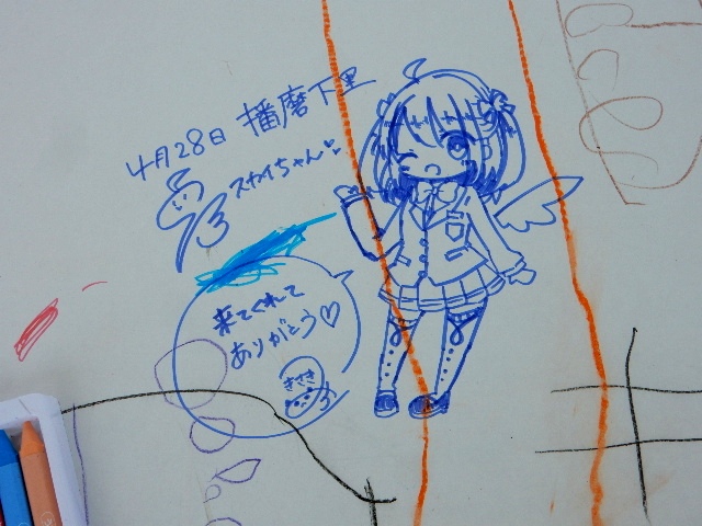 屋外の落書きコーナーにはスカイちゃん役の姫咲美羽さんも参加。