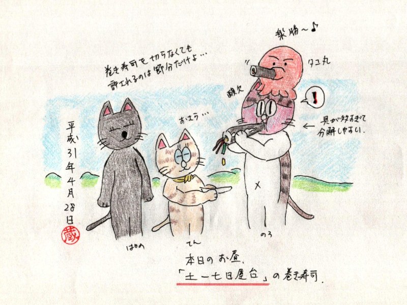 お昼に頂いた巻き寿司の、私なりのイメージです。