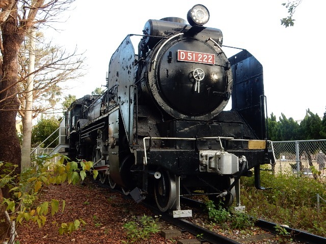 この公園には、D51型蒸気機関車の保存車があります。
