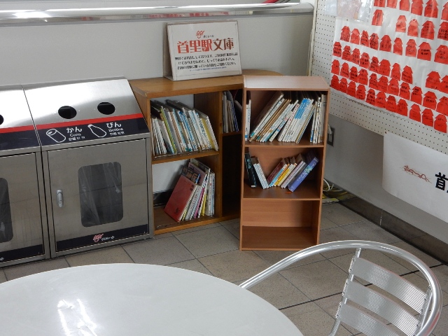 コンコース内にテーブルと椅子があって、地元の皆さんが持ち寄った