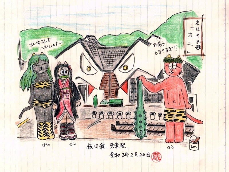 これは駅のある東栄町で毎年12月に行われる花祭で、鬼が登場する
