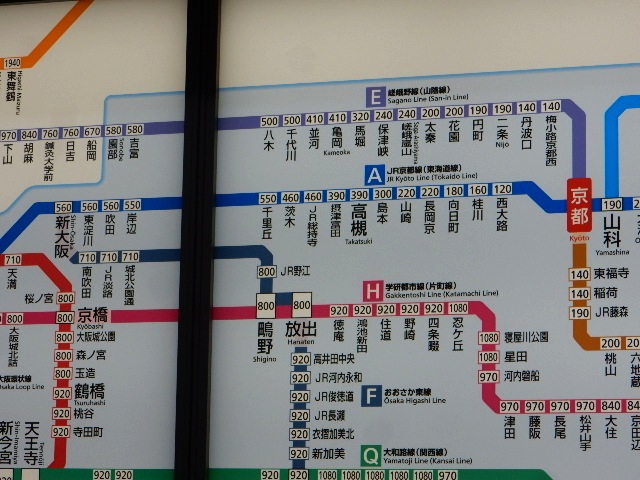 そんな感じで京都駅からスタート。…当たり前ですが、運賃表や駅名票
