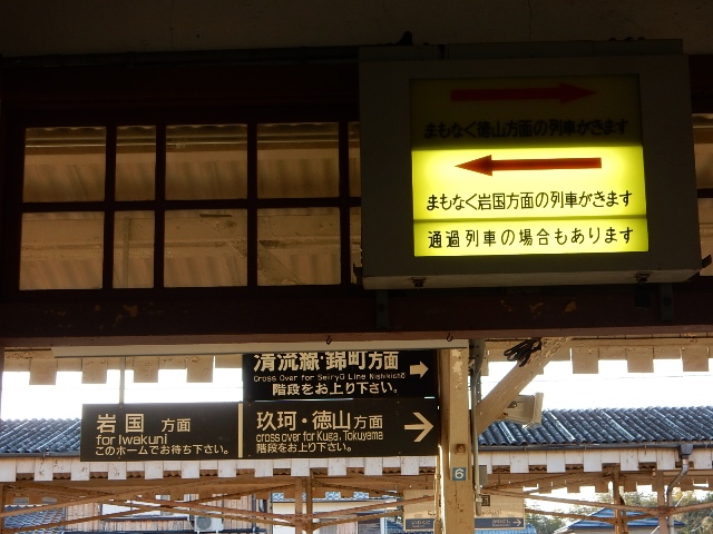 ホームは2面3線の国鉄スタンダードタイプです。…「岩国駅」だった