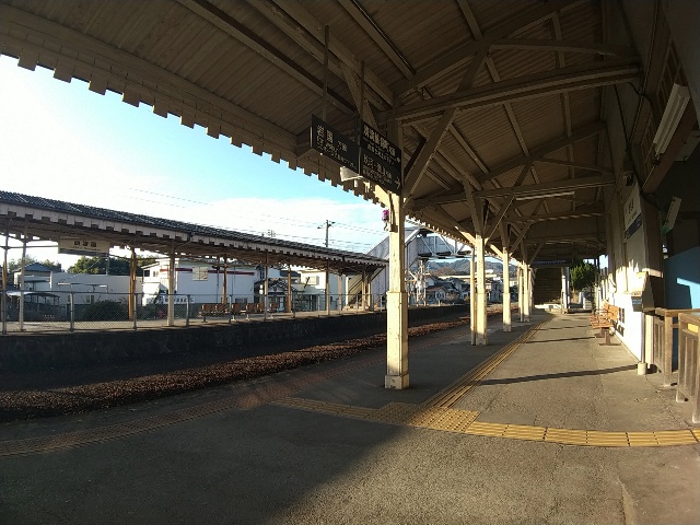 無人駅ですが券売機で切符が買えましたので、2つ先の柱野駅まで