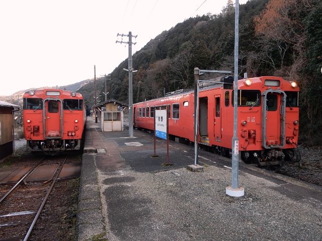 乗ってきた下り列車は数分間停まって上りの岩国行きを待ちます。
