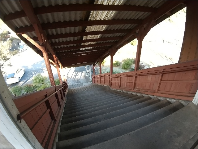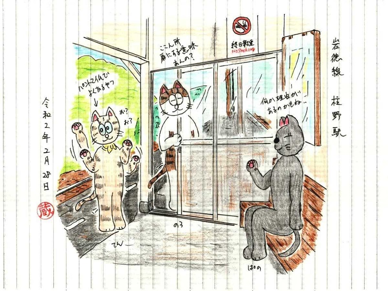そんな感じで私は何を描きましょう?…階段で「猫は液体」は那岐駅で