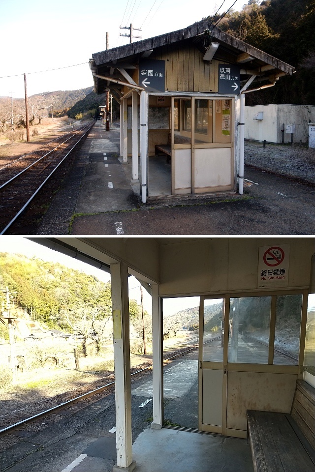 ローカル線の島式ホームにありがちな建物ですが、岩国方向の線路