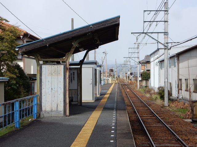 棒線ホームのあまり特徴のナイ駅です。駅名票は近鉄の物を流用した