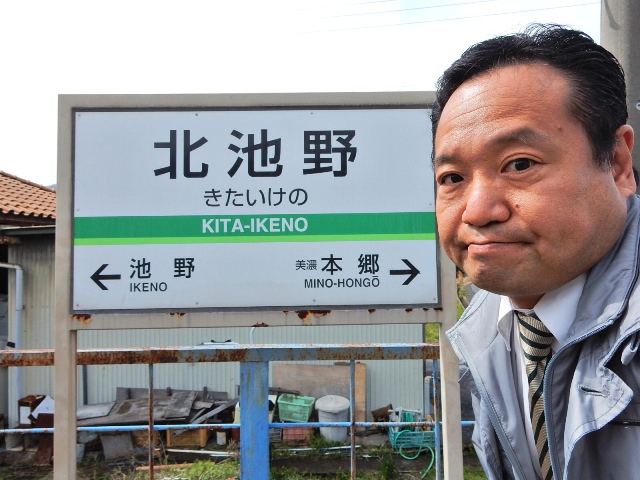 終点の揖斐方向にある北池野駅にやって来ましたクラ駅長です。