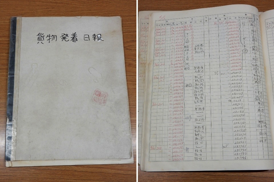 変わった所では貨物列車があった頃の資料として、当時の発着日報
