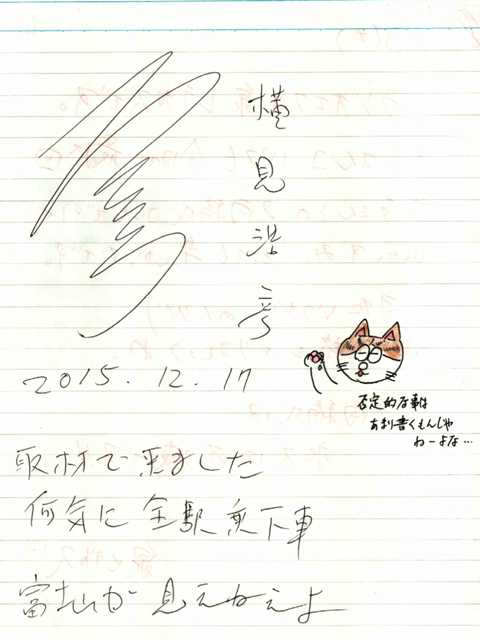 のサインが駅ノートに残っていました。…はい、ヨコミ氏ですね。