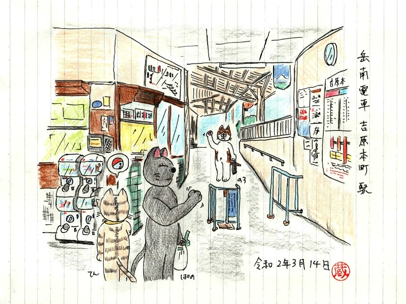 さて岳南電車ですが、今回は駅ノートを描くので先ずは吉原本町駅に