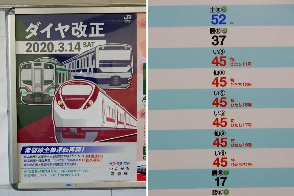 …の前にコレまたダイヤ改正で完全復旧した常磐線の確認をしておき