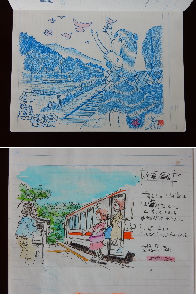 …駅ノートの絵師さんたちには、自身を女の子キャラに設定するぐらい