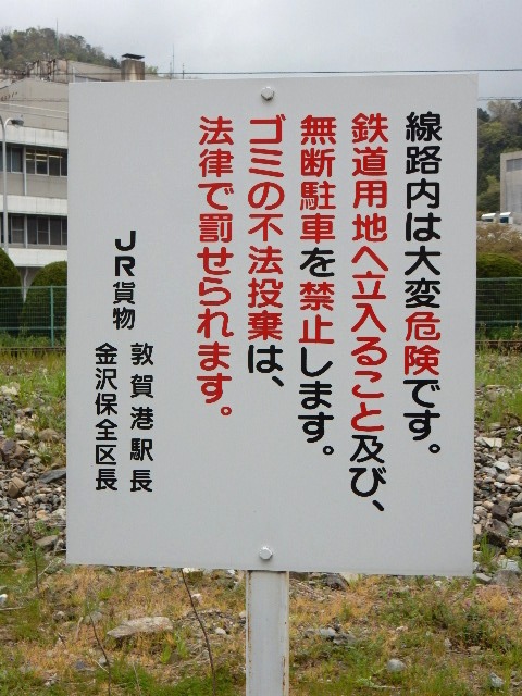 立入禁止の看板が出てきました。…しかし線路が残った鉄道用地内