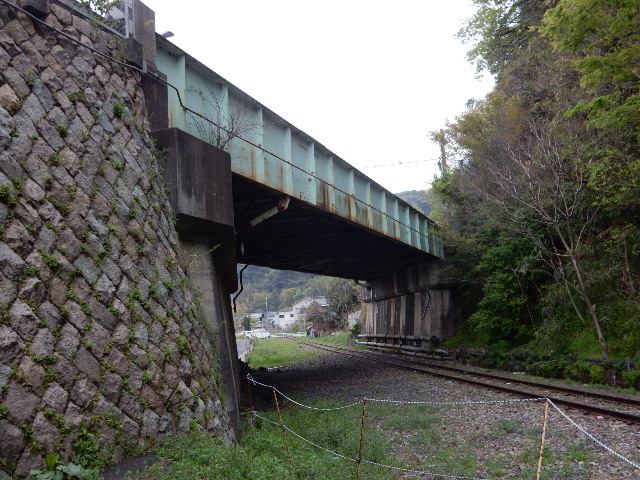 暫く行くと廃線跡を跨ぐ高架が出てきました。鉄道っぽい鉄橋ですが