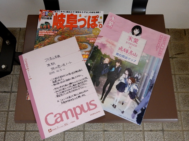 駅ノートと共に飛騨高山の観光パンフレットが置いてあります。