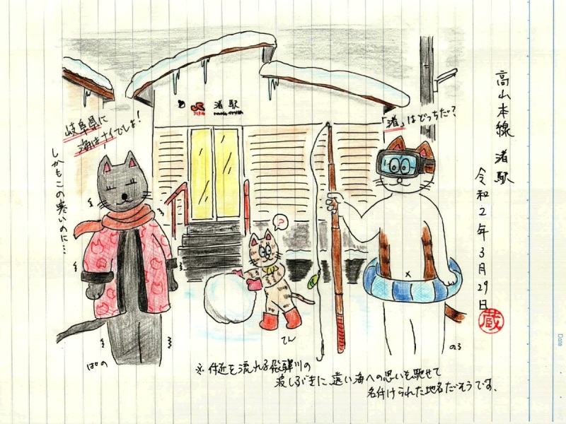 さて飛騨地方の駅ノートですが、朝から3月下旬とは思えない積雪の