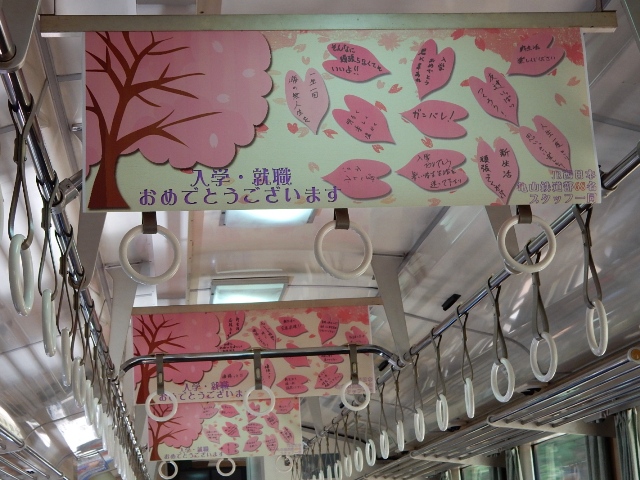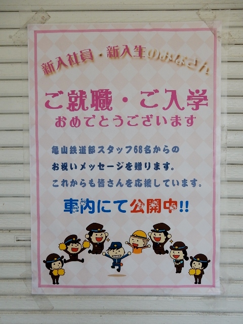 車内にはこの区間を管理する亀山鉄道部の皆さんから今年の新入生