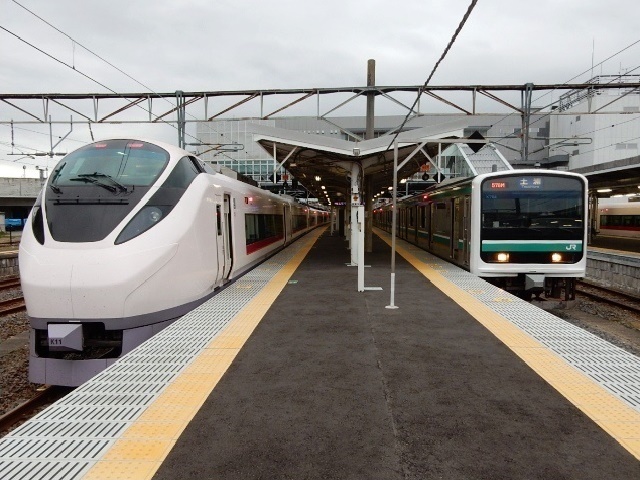 あ、特急「ひたち」…E657系ってグリーン車も4列なんですね。